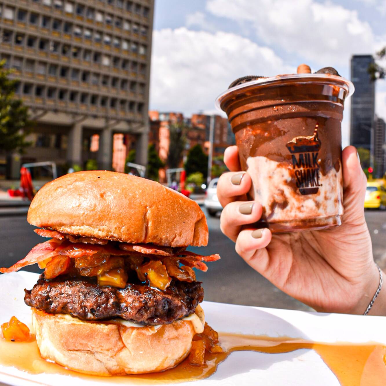 Malteada de macadamia, arequipe, Chocoramo, galleta Milo, burbuja Jet, barquillo, salsa de arequipe, chantilly.
