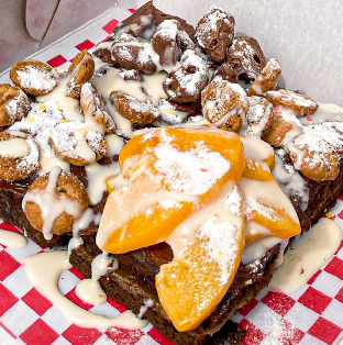 Malteada de chocolate, crema de avellanas, waffle, maní triturado, snickers, barquillo, salsa de chocolate, chantilly.