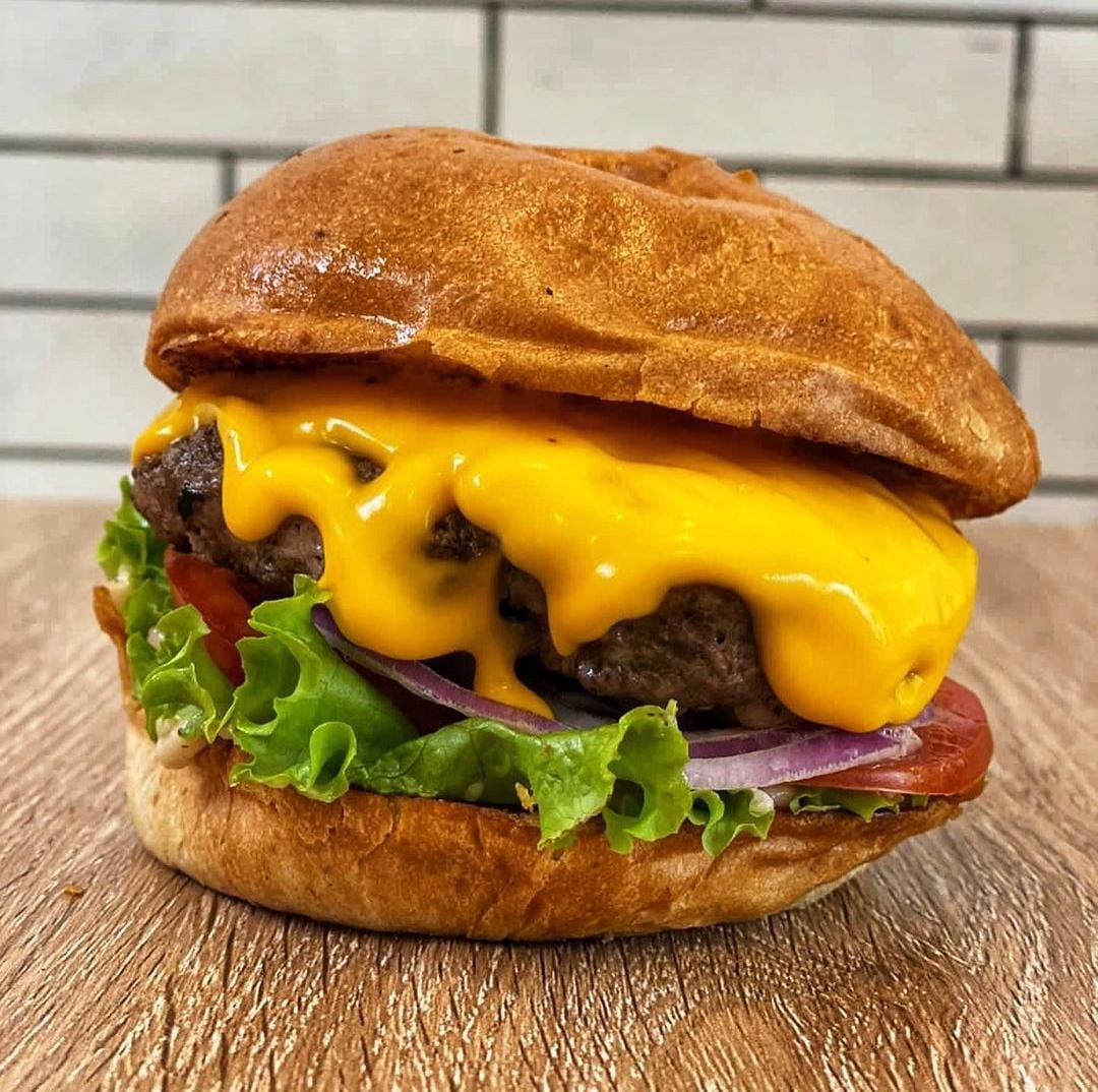 Pan brioche, 150 g de carne artesanal, Tocineta, queso cheddar, lechuga, tomate, cebolla y salsa de la casa.