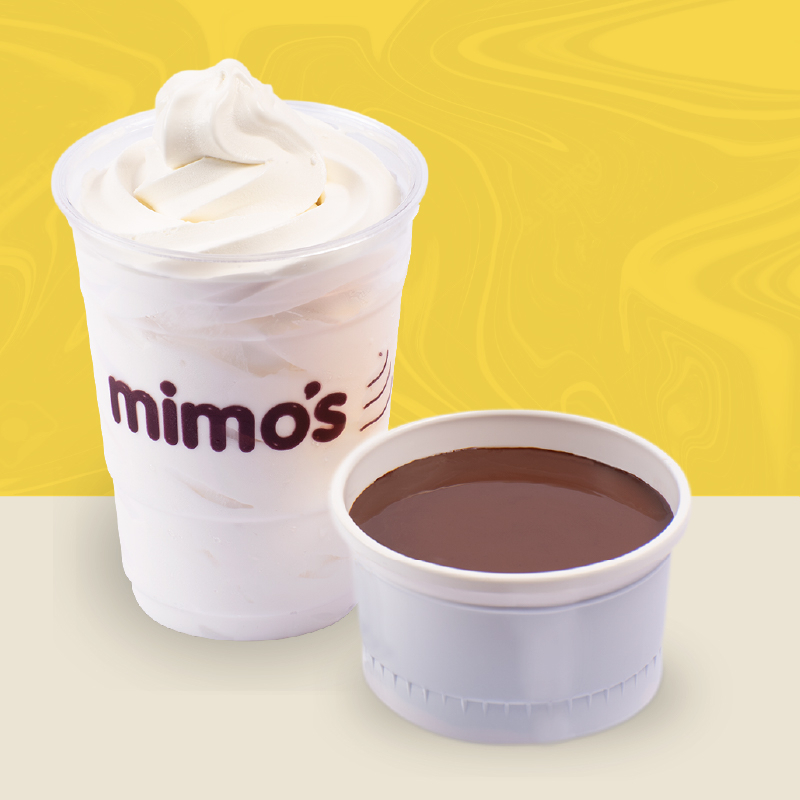 Perfecta combinacion de helado suave de vainilla y salsa de Chocolate Caliente, la consistencia de la cobertura de chocolate mimo's(caliente)puede variar a temperatura ambiente.