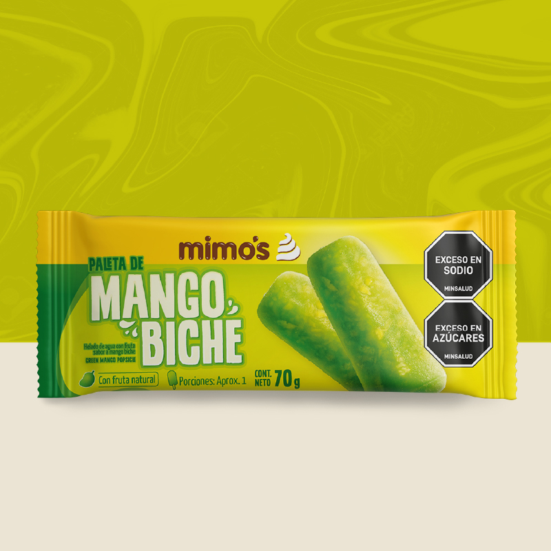 Refrescante Helado de agua con fruta y trozos de Mango biche