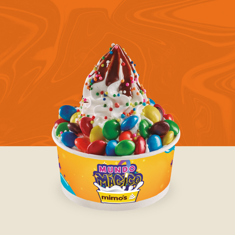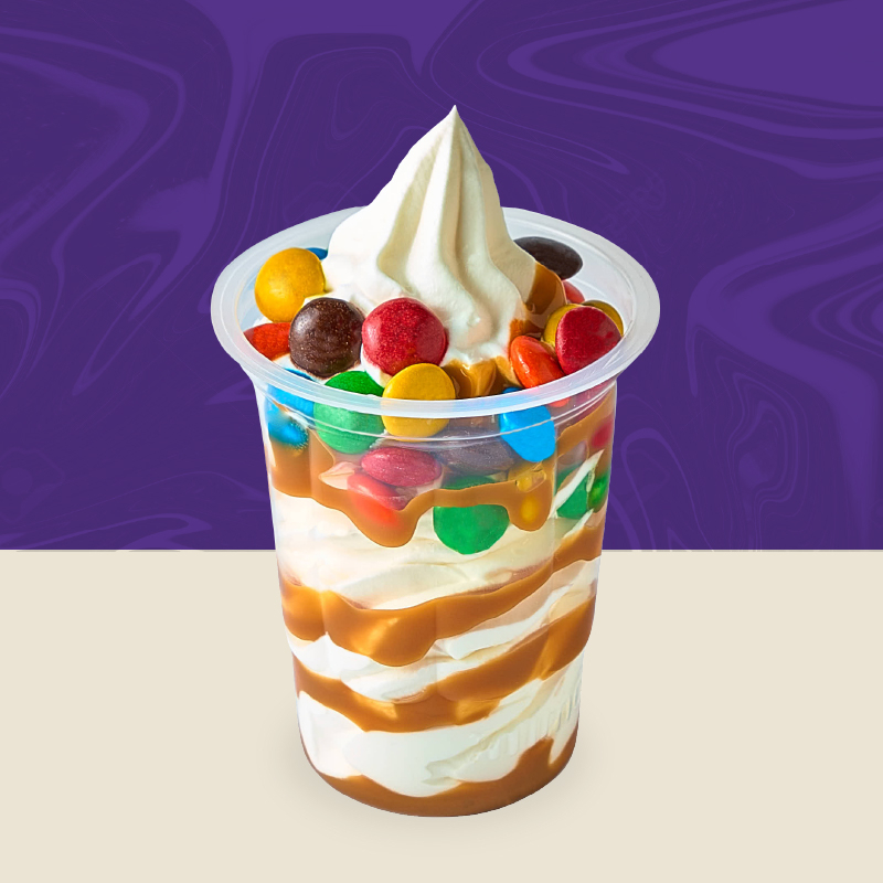 Divertida combinación de Helado suave de vainilla, m&m y salsa Arequipe, imagen de referencia