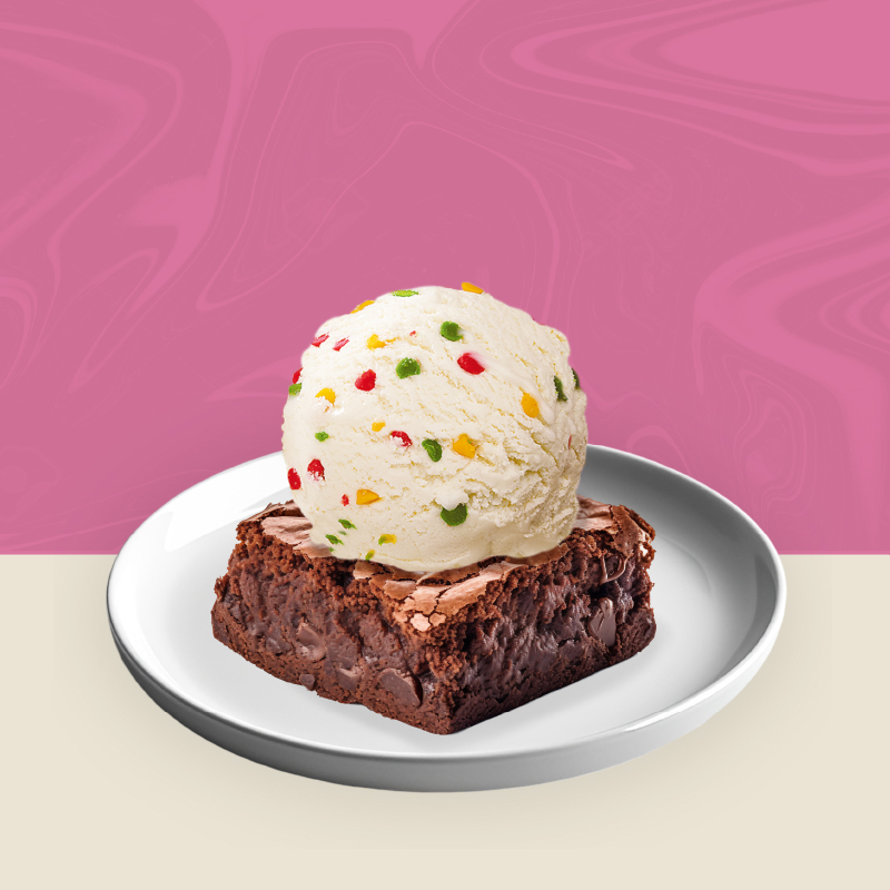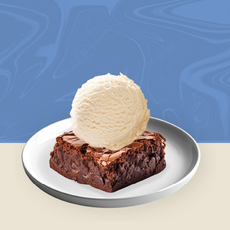 Mezcla de tus sabores favoritos: Helado suave de vainilla y Trozos de brownie.