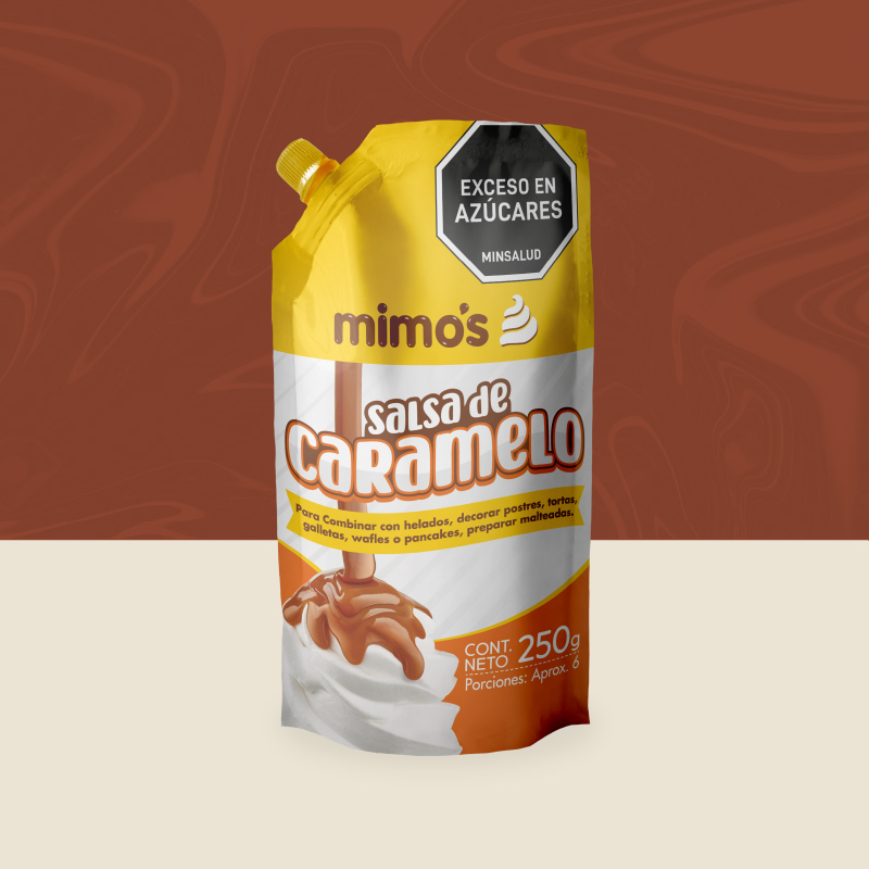 Salsa de caramelo 250 gr en empaque colapsible para disfrutar en casa.
