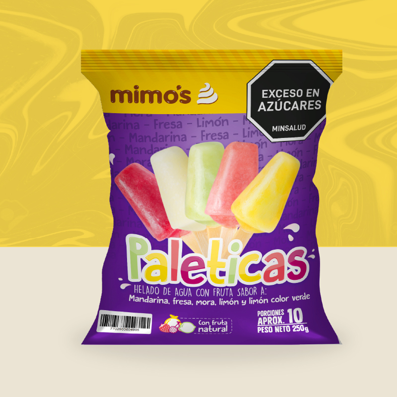 Paleticas surtidas en agua con sabor a:(mandarina, fresa, mora y limon)