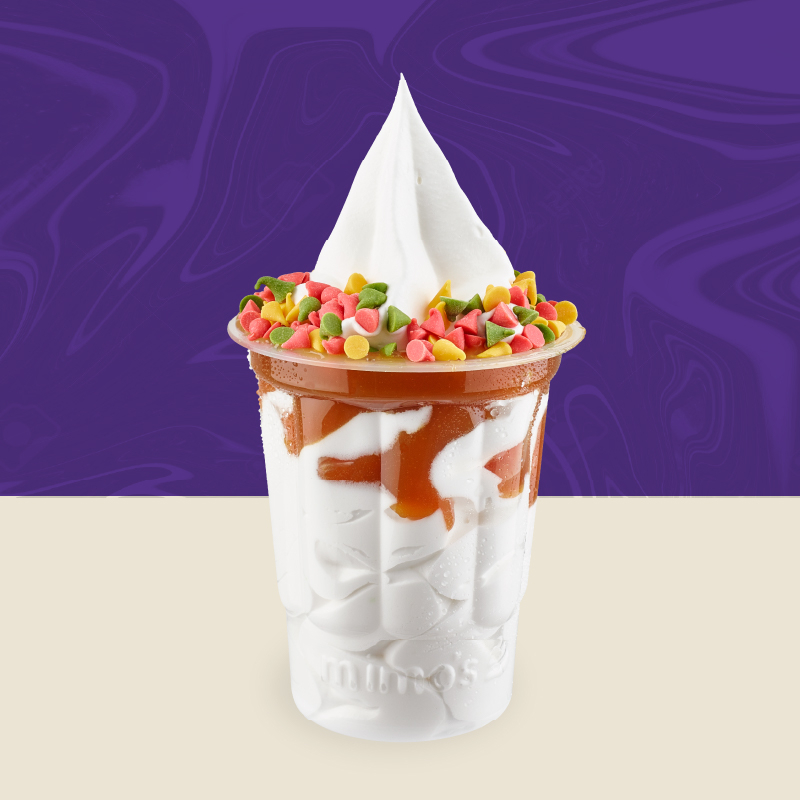 Disfruta la combinación de helado suave de vainilla, acompañado de trozos de chocolatina Jumbo, salsa de arequipe y maní (Nuestros productos contienen o pueden contener trazas de nueces, huevo, soya, glúten y/o lácteos).