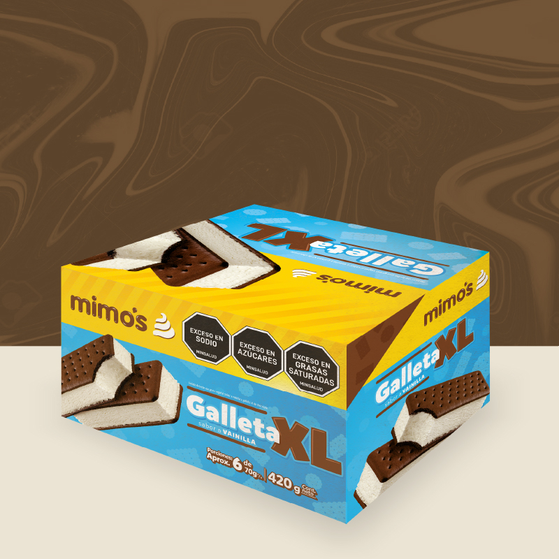 Galleta de chocolate rellena de helado de vainilla en presentacion caja x 6 unidades