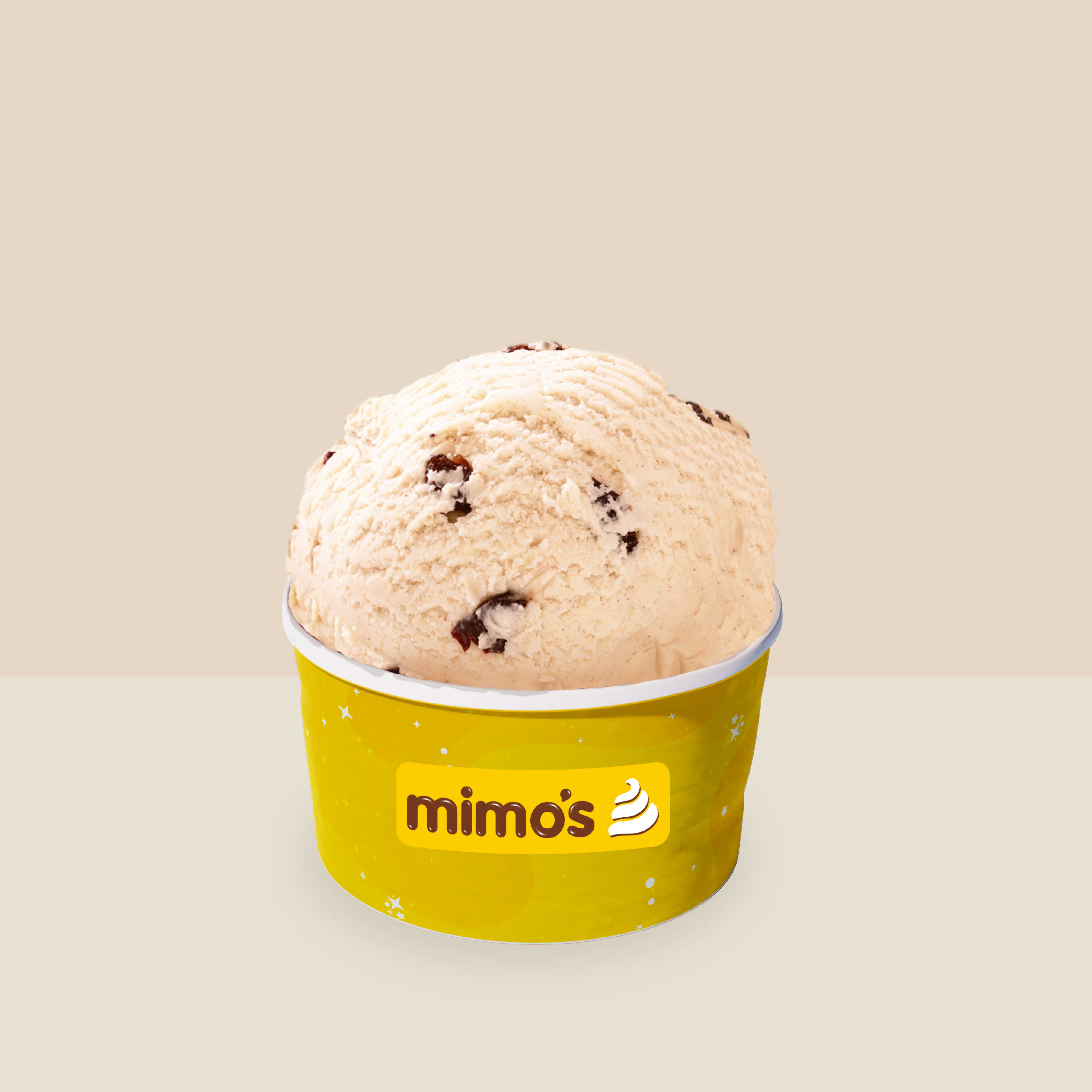 Bola de helado duro sabor a Ron y Pasas al que puedes adicionar deliciosos toppings, imagen de referencia.