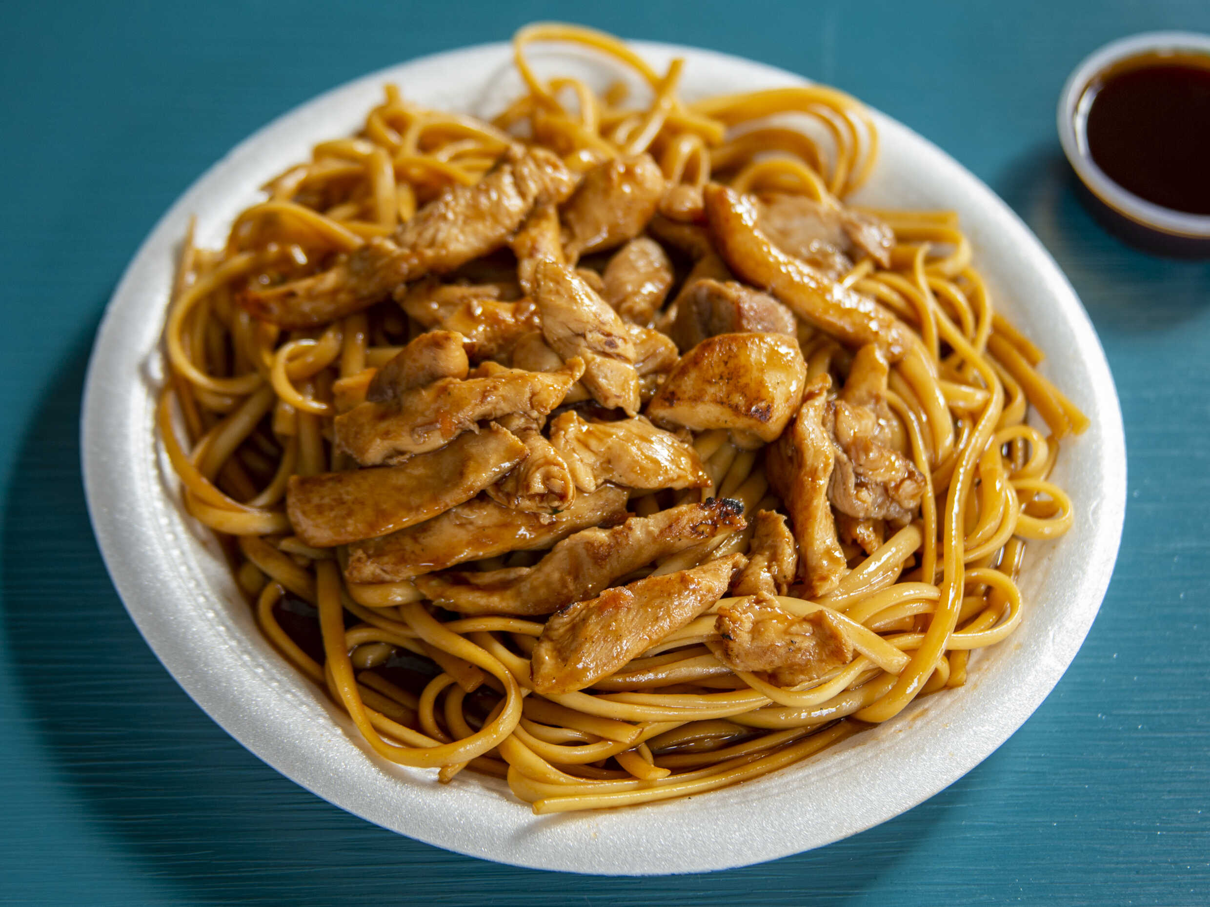 Lo mein, pollo con arroz sencillo y gaseosa. 250ml