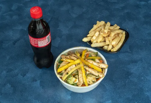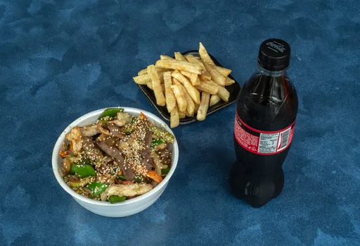 Teriyaki bowl, papa a la francesa y gaseosa. 250ml