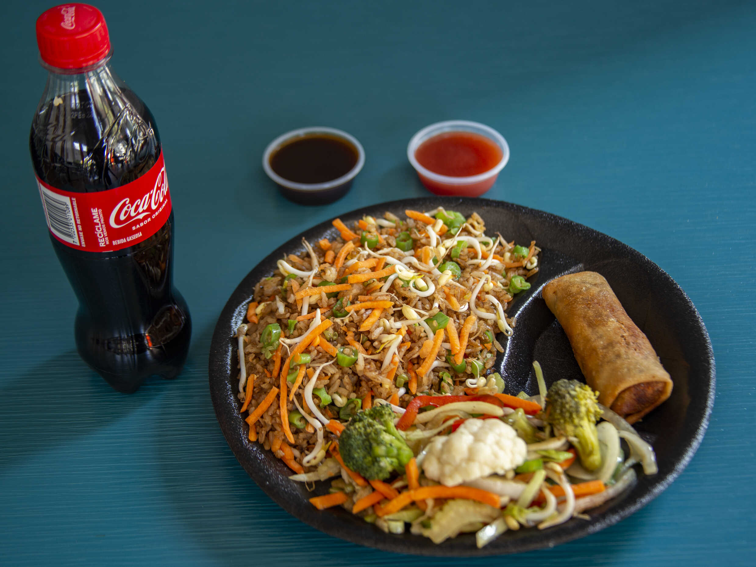 Chop suey sencillo, 1 egg roll, arroz sencillo y gaseosa.
