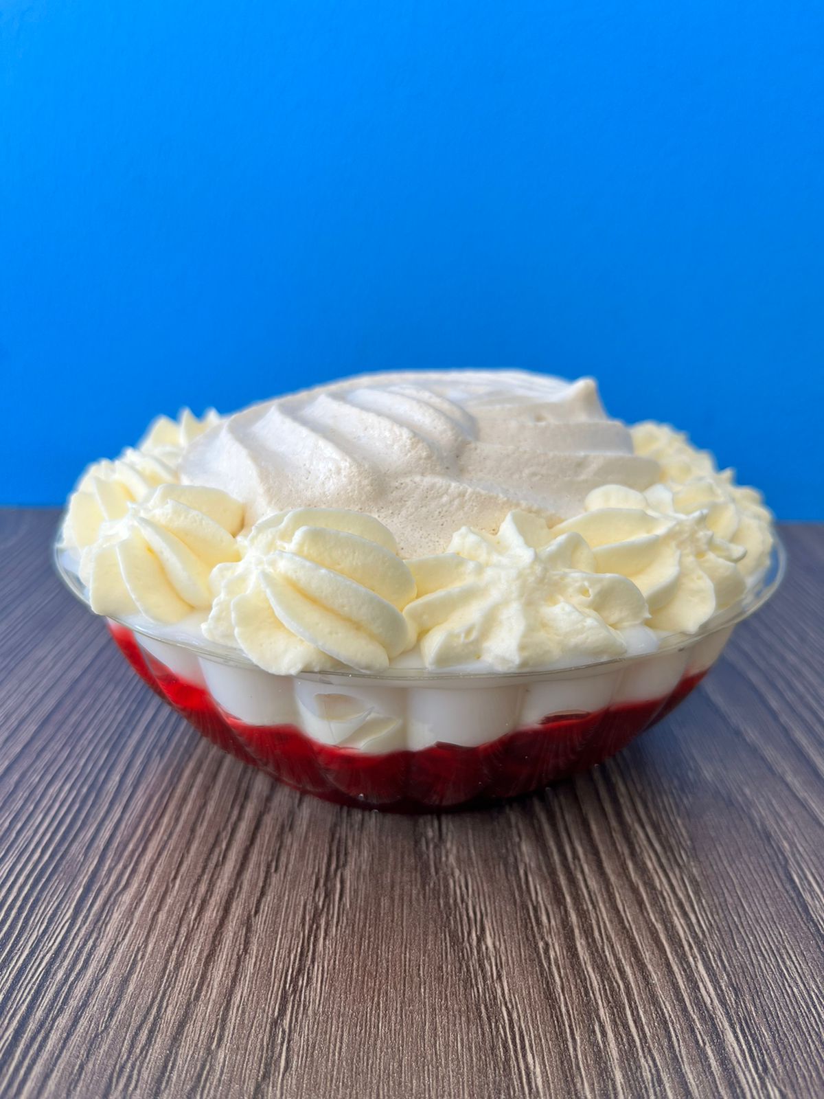 Merengues cubiertos con crema chantilly y dos salsas a elegir.