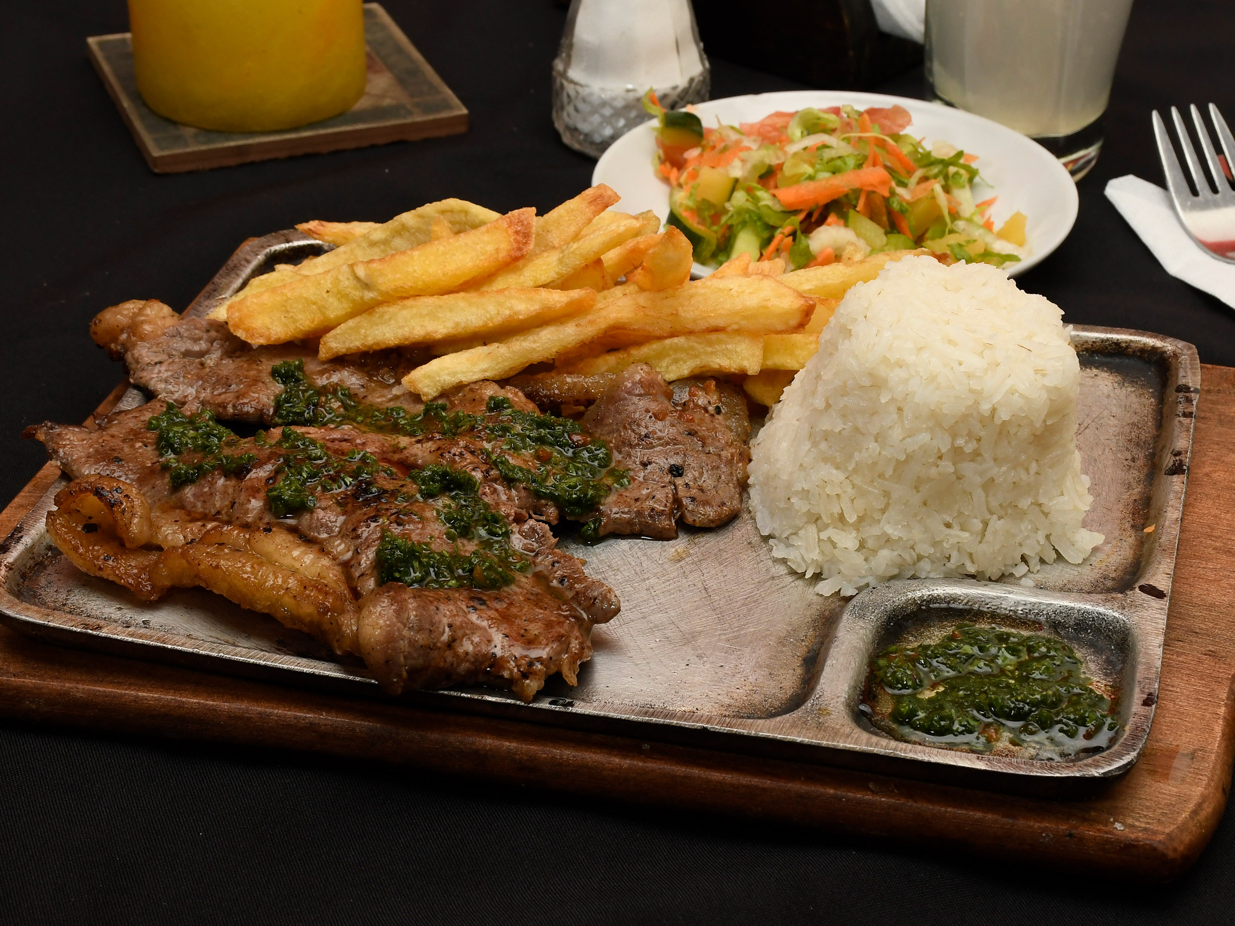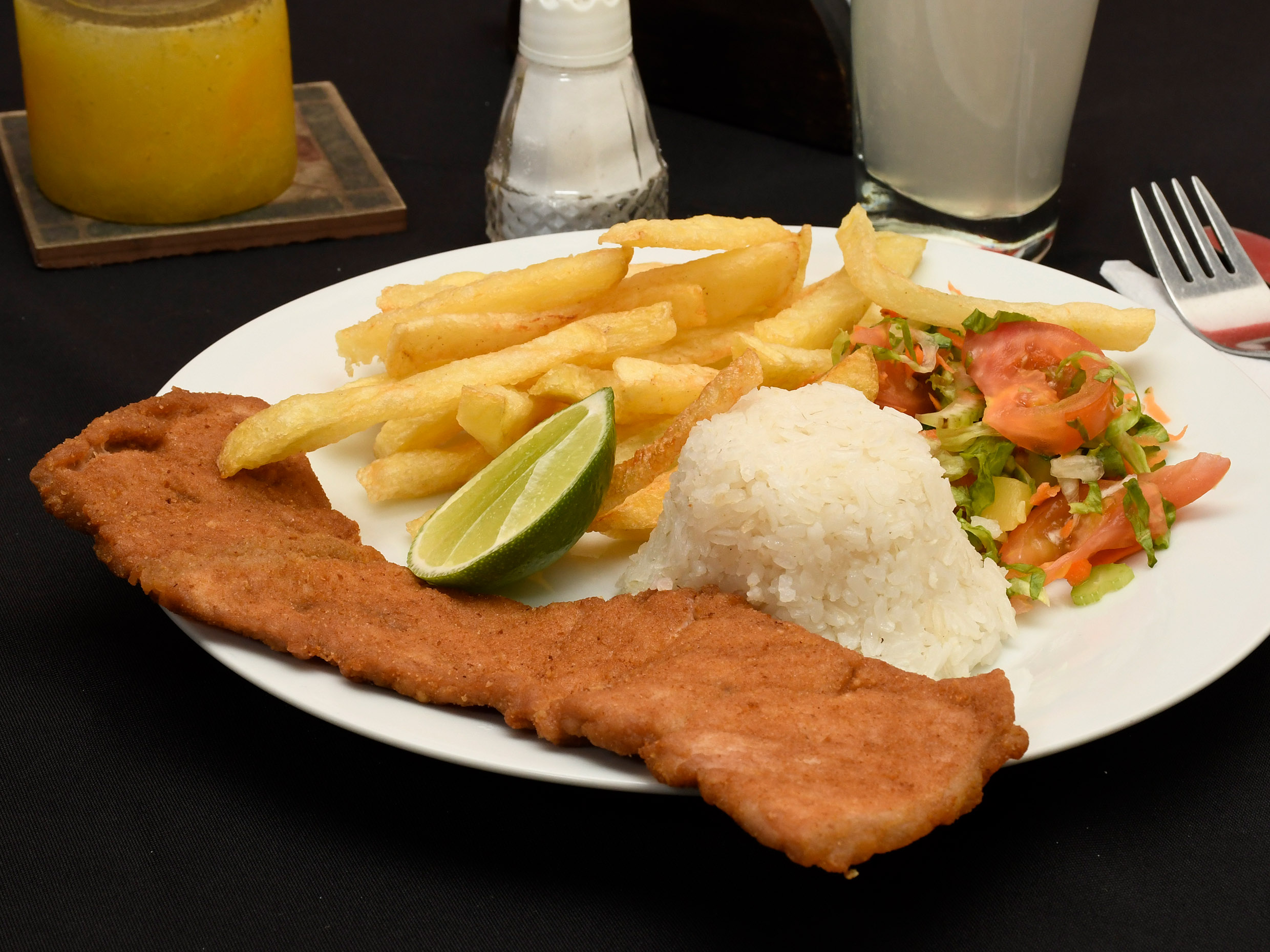 acompañado de arroz, papas a la francesa y ensalada de la casa.