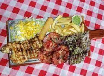 costilla de cerdo , res, pechuga y chicharrones, 350gr acompañado de arroz, francesa y ensalada