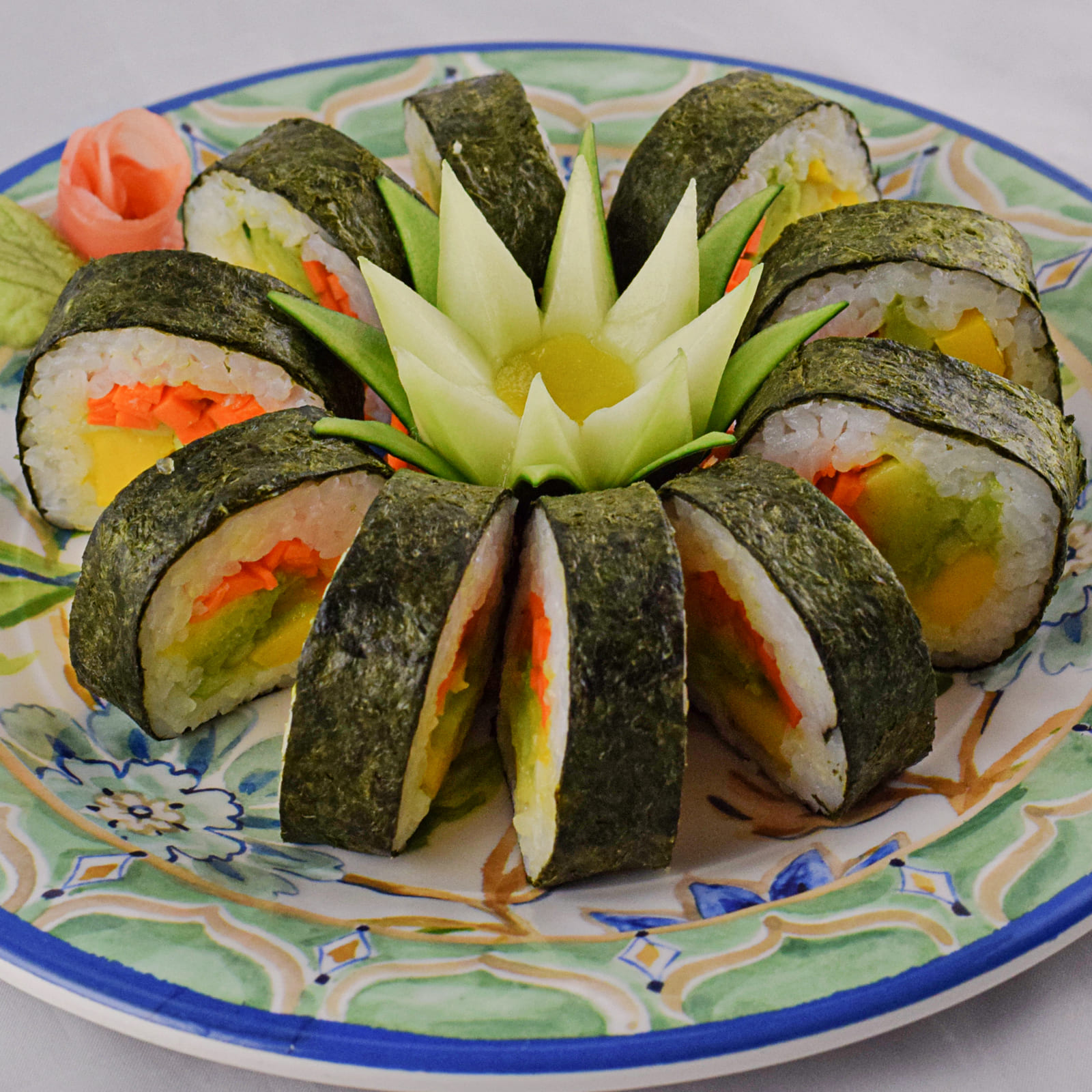 pepino, palmito fresco, aguacate, topping ajonjoli (uramaki).