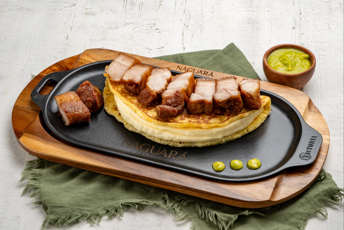 Chicharrón, aguacates, salsa guasacaca, queso llanero.