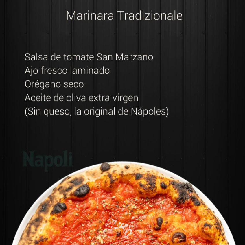 Pizza artesanal de 30 cm con Salsa de tomate, Ajo fresco laminado Orégano seco Aceite de oliva extra virgen (Sin queso, la original de Nápoles)