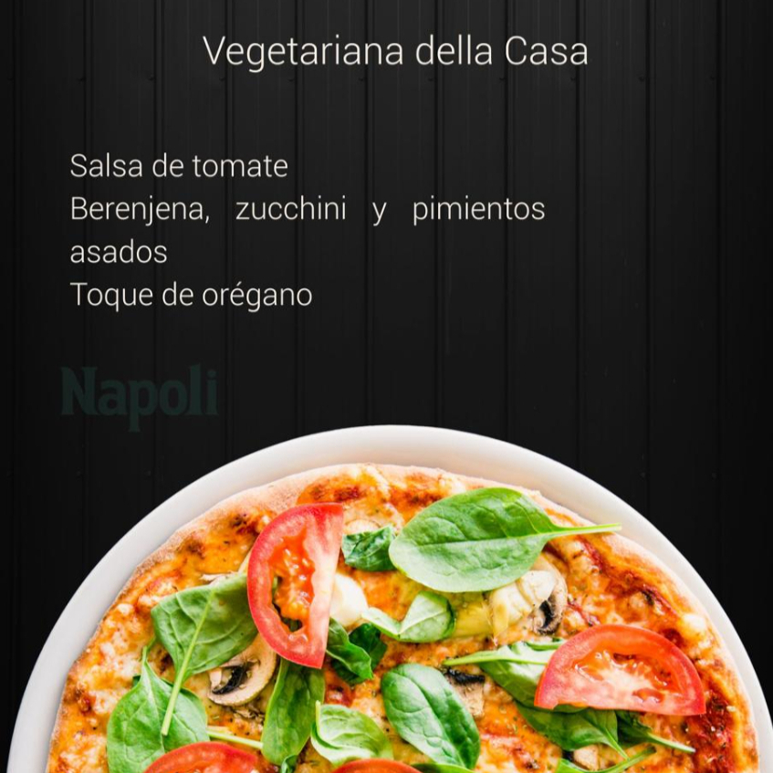 Pizza artesanal de 30 cm con Salsa de tomate Berenjena, zucchini y pimientos asados Toque de orégano