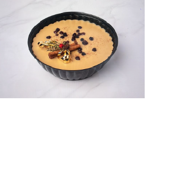 Bizcochuelo blanco bañado en leche de coco, con una capa de flan de coco y arequipe; decorado con coco dorado. Conservarse refrigerado.