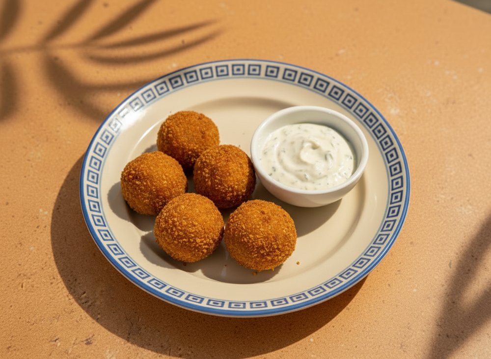 Mini bowl con porción de albóndigas de berenjena con queso (5 unds) y hummus de tu elección.