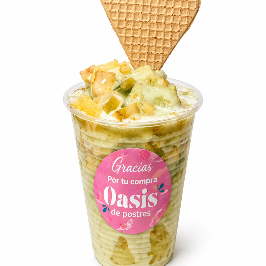 Refrescante lulada con trozos de fruta, leche condensada, 1 porcion de helado y galleta. ¡Fresca, dulce y tropical! ✨ Servido en vaso de 12 onzas