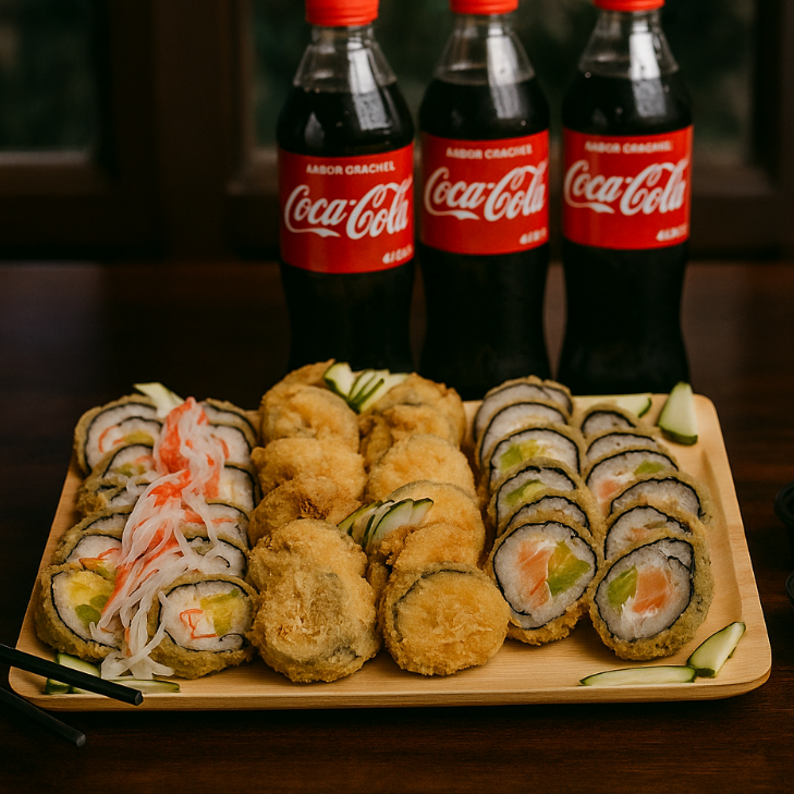 Crunch roll*1 + Rock n´roll 12 Makis*1 + Tiger Especial X 12 Makis😍*1 + Coca cola 400 ml*3