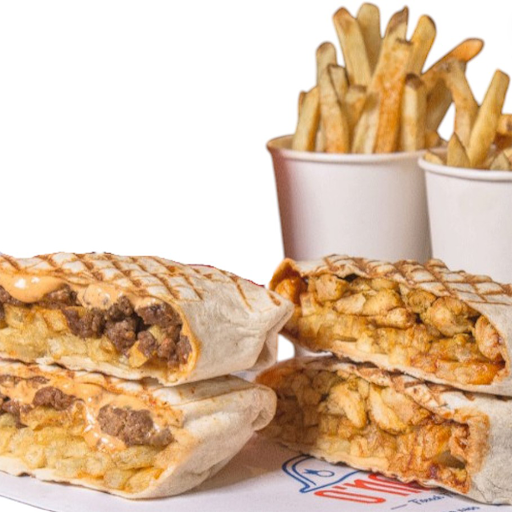 2 burritos franceses con proteína y salsas a elección + 2 porciones de papas