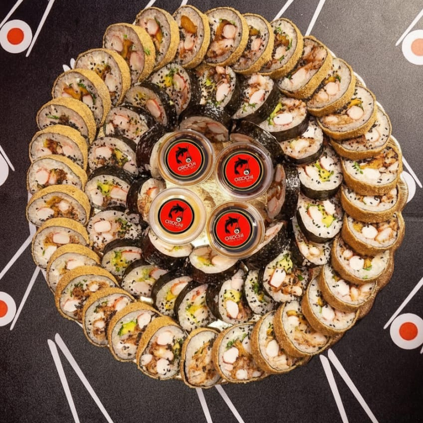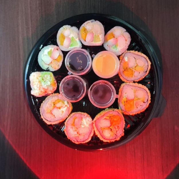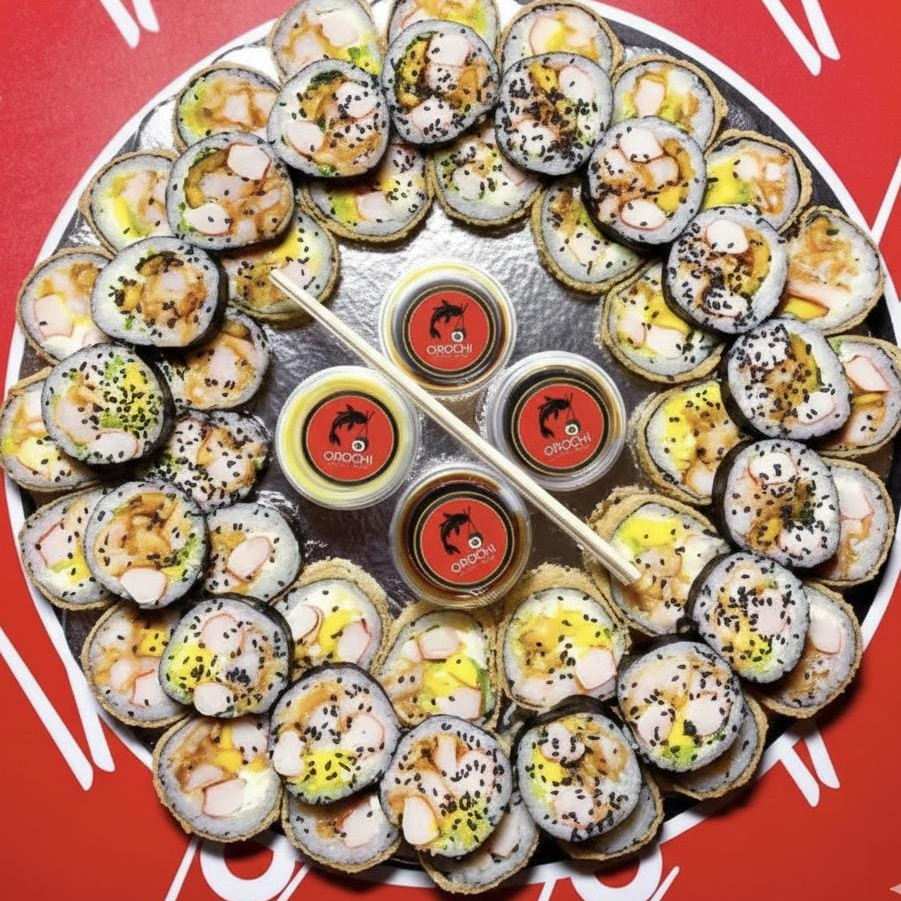 Una combinación perfecta de sabores frescos y crujientes en un solo rollo, ideal para quienes buscan variedad y textura en cada bocado. Incluye: queso crema, aguacate, bastón de plátano, palmito de cangrejo, pescado blanco, pollo tender, atún y langostino.