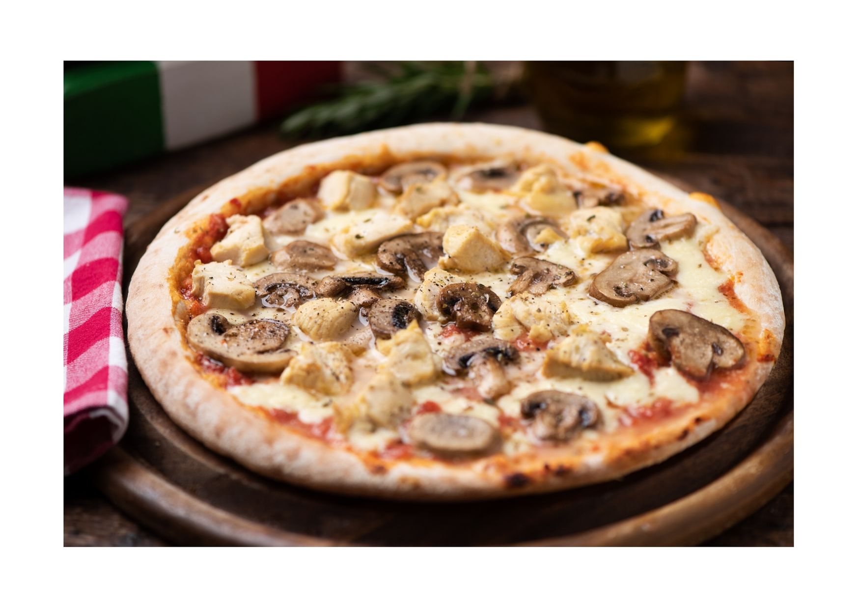 Salsa napolitana y Alfredo con champiñones, pollo y jamón.