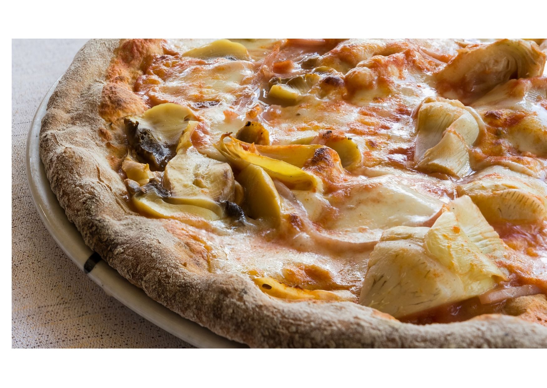 Alcachofa, berenjena, calabacín, apio, zanahoria, champiñones, tomate, queso, mozzarella, aceitunas, jamón y salami. Adición de espinaca, pimentón y prosciutto.