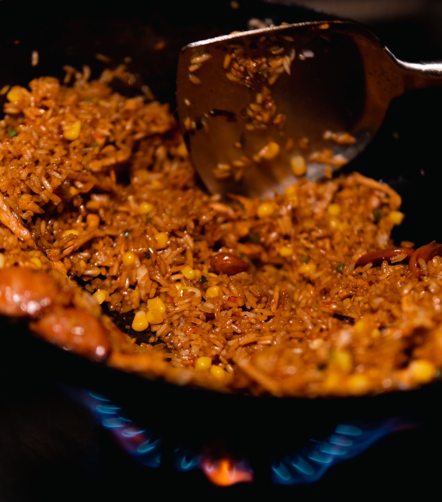 Arroz 180 Gramos, Salteado con Salchicha Americana, Maíz, Cebollín, Salsa soya, Hoisin.
