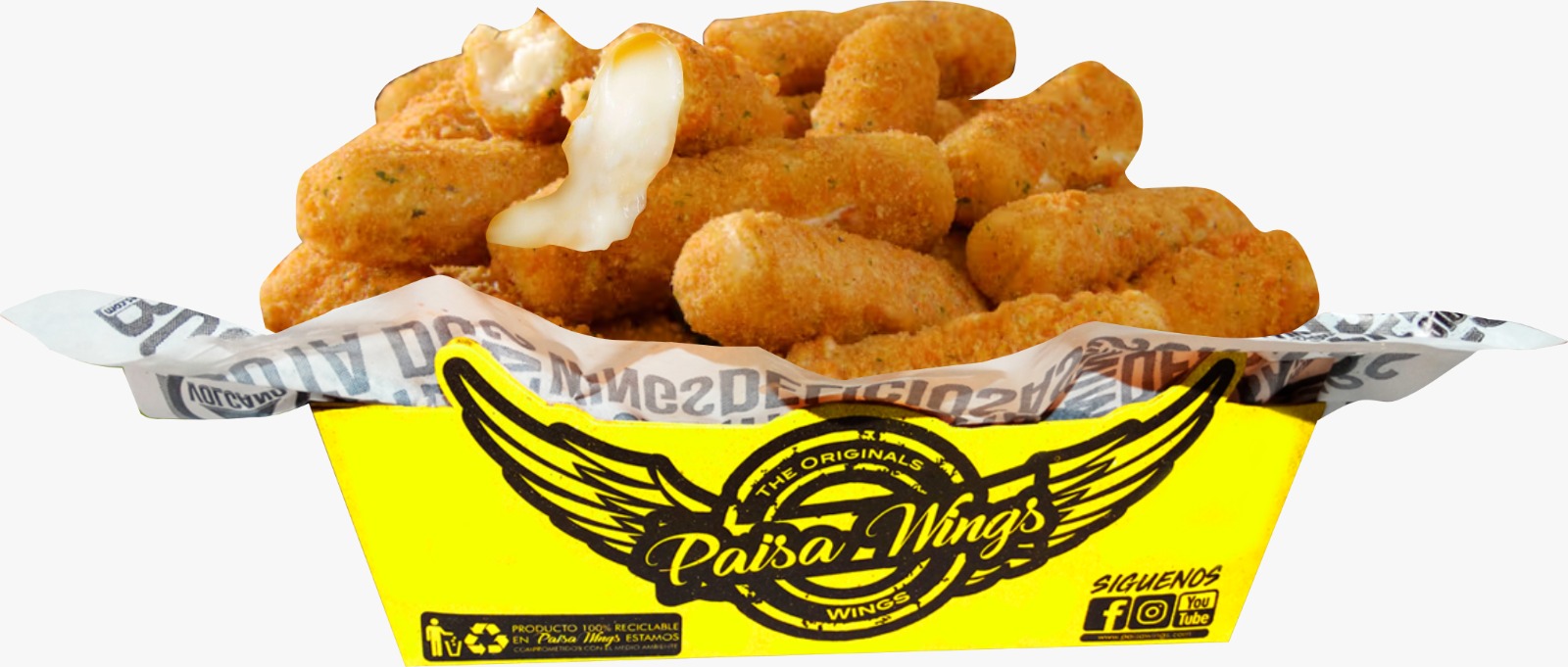 Mix de tenders y alas, acompañadas de apio y zanahoria, con salsas a elección y papas a la francesa.