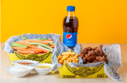 10 Piezas de alas, zanahoria, apio, salsa ranch, una porción de papa a la francesa y una bebida a elegir (productos postobón).