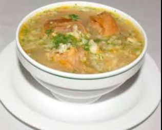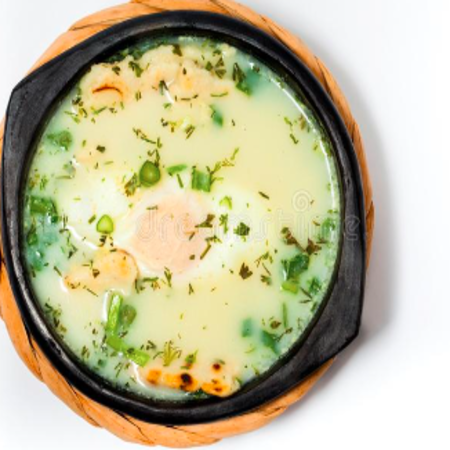Exquisita changua con la receta tradicional de huevo, cálao, cebolla y cilantro.