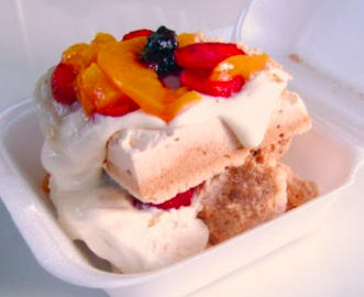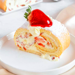 Delicioso postre de brazo de reina con crema y fresas para 6 porciones.