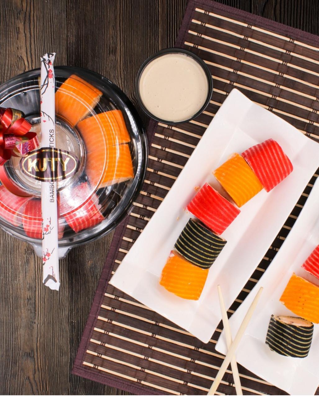 9 Rollitos de 3 sabores diferentes (Maracuyá, fresa y chocoqueso), con salsa de baileys.