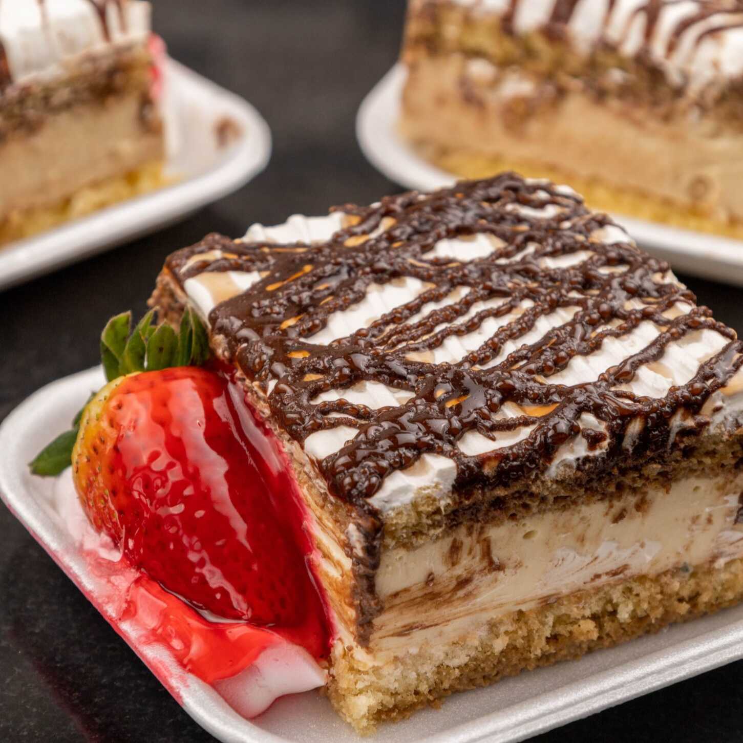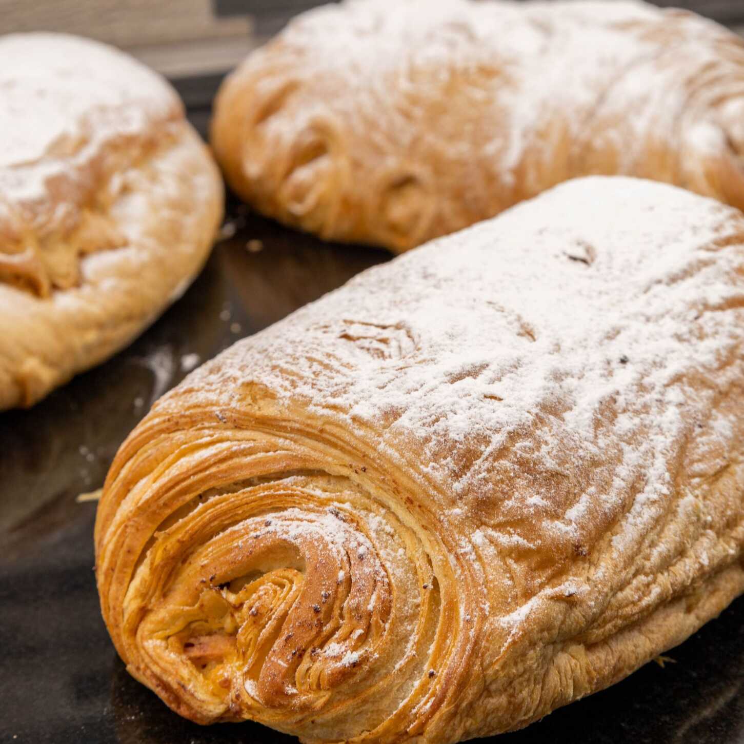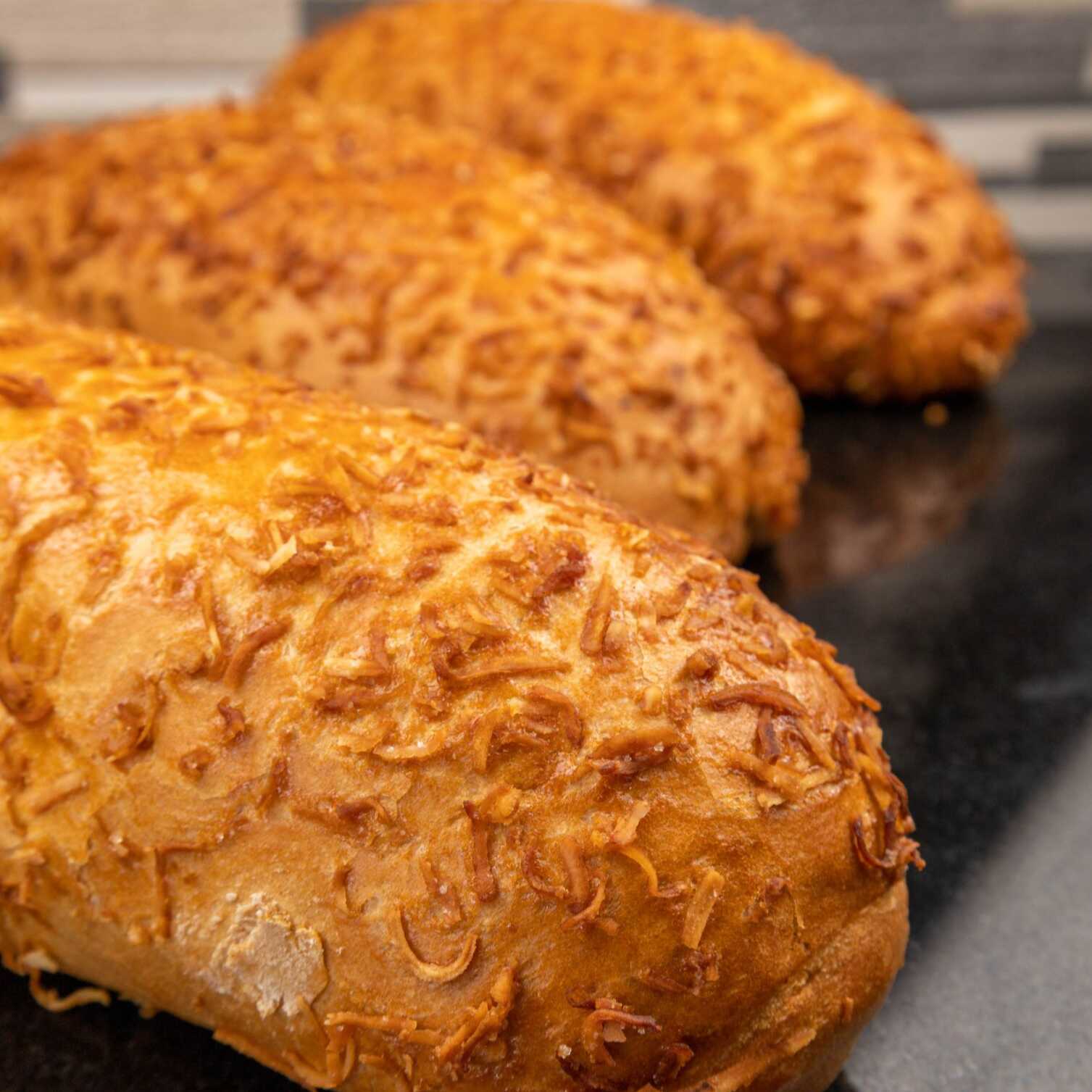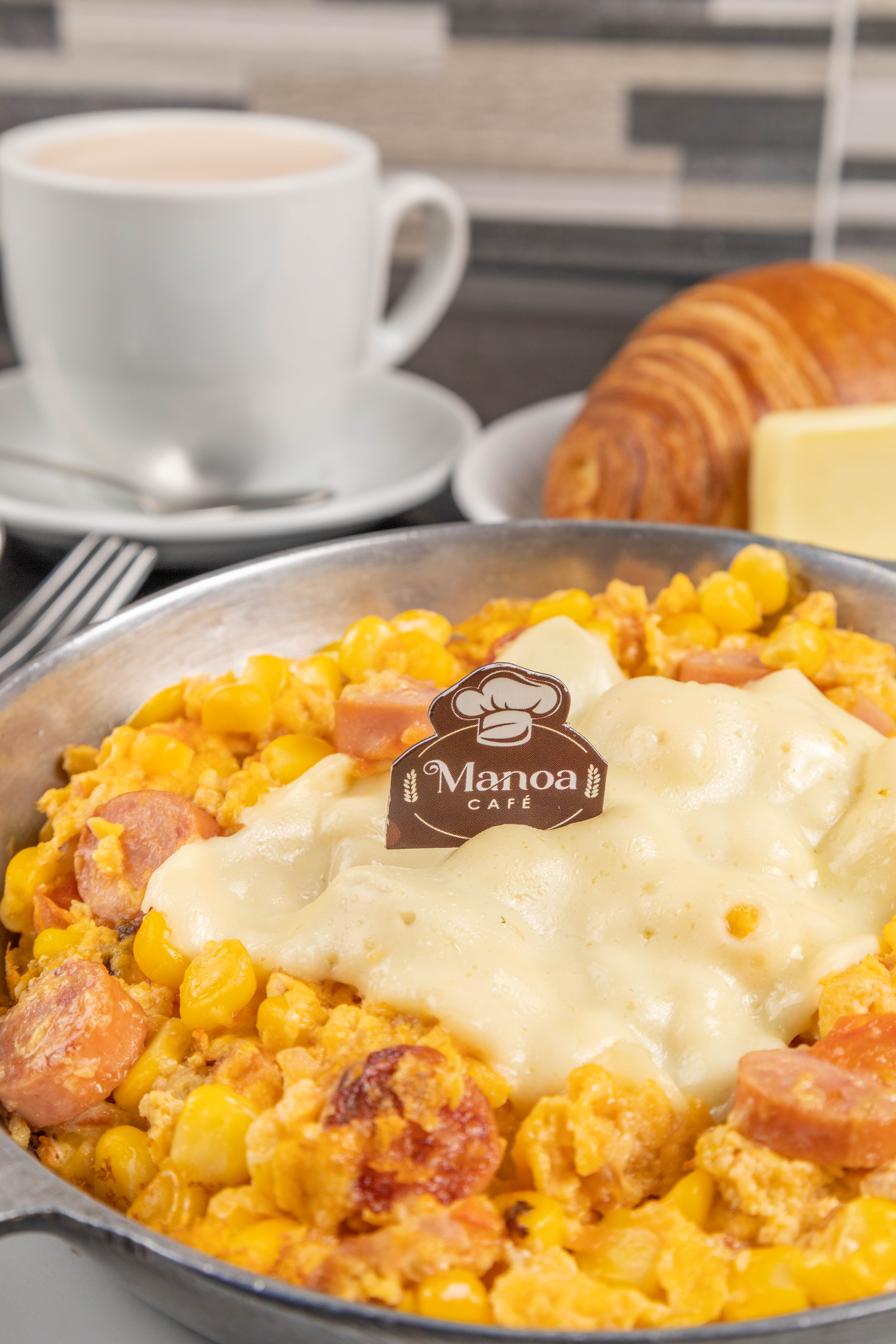 Huevos, salchicha, jamón, maíz tierno, queso fundido, queso, pan y chocolate.