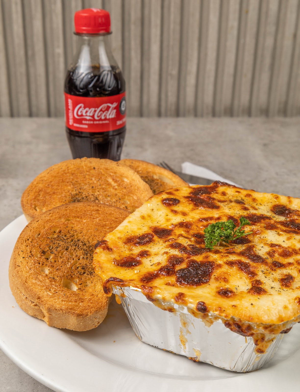 Crepes de carne molida en salsa boloñesa y queso mozzarella fundido.