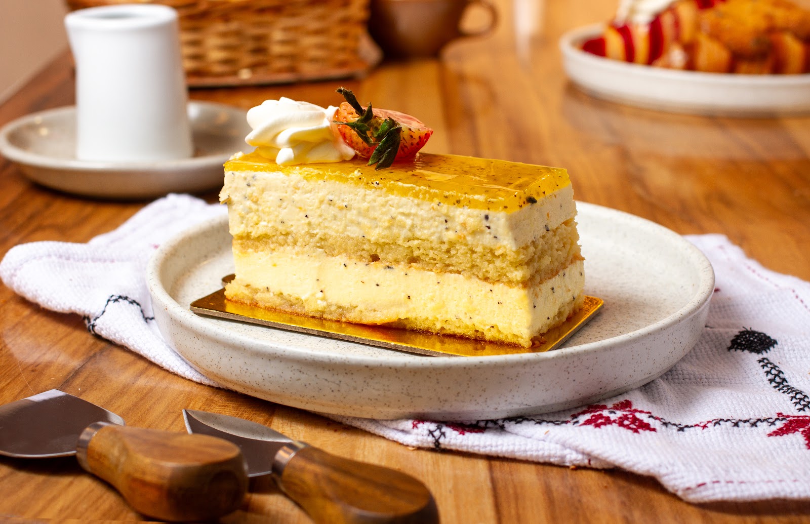 Típica changua santandereana, con almojábana y queso, acompañado de pan y bebida caliente.