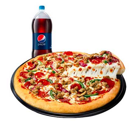 DELICIOSA PIZZA 27*27 C.M EN MASA MADRE CON QUESO MOZARELLA , SABOR A TU PREFERENCIA ACOMPAÑADA DE UNA GASEOSA 250ML