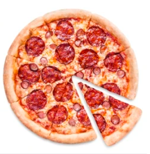 Deliciosa pizza 50 × 50 cm en masa madre con queso mozzarella y el sabor de tu preferencia.