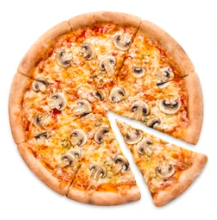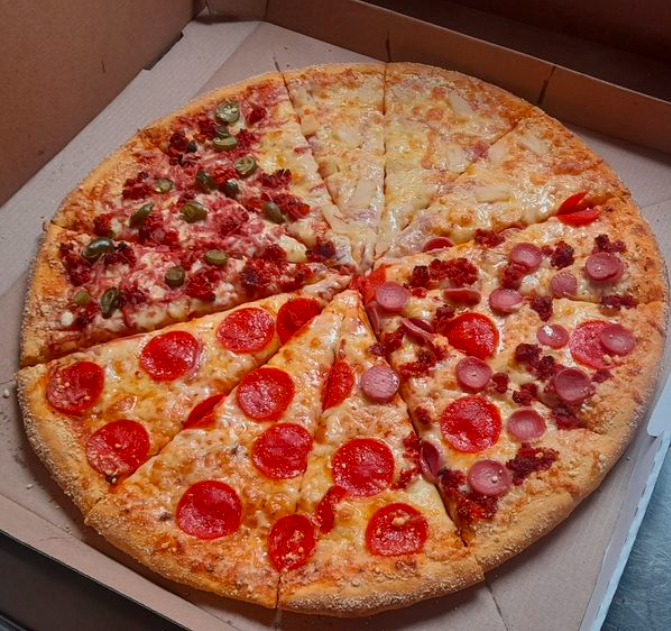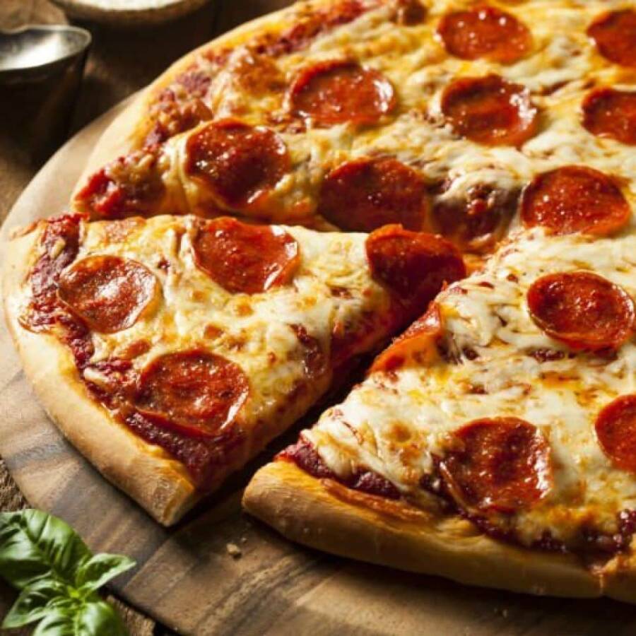 Deliciosa pizza 40 × 40 cm en masa madre con queso mozzarella y el sabor de tu preferencia.