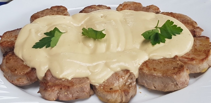 Lomo de cerdo gratinado en queso doble crema, acompañada de papa salada o francesa, arepa boyacense, aguacate, arroz, jugo del día o limonada y sopa, crema o fruta.