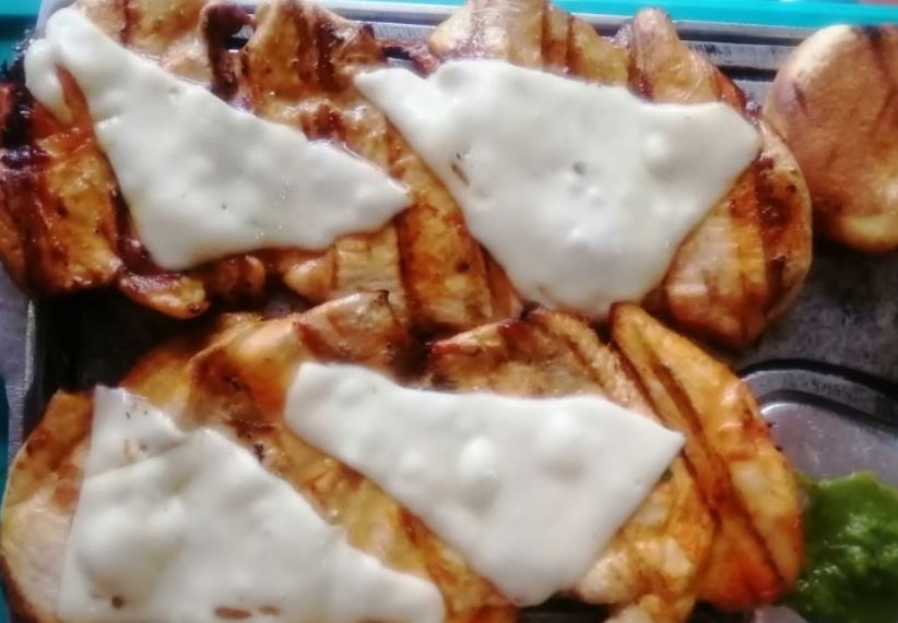 Pechuga de pollo gratinada en salsa de queso doble crema, acompañada de papa salada o francesa, arepa boyacense, aguacate, arroz, jugo del día o limonada y sopa, crema ó fruta.