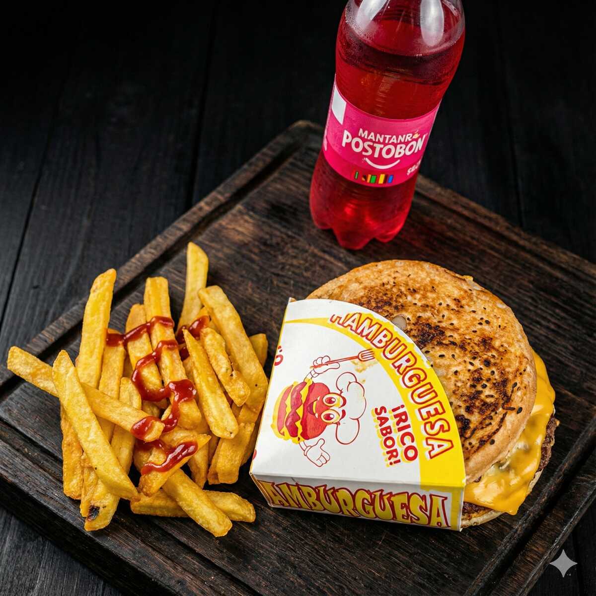 Hamburguesa Sencilla de Res +Papas + Gaseosa 250ml