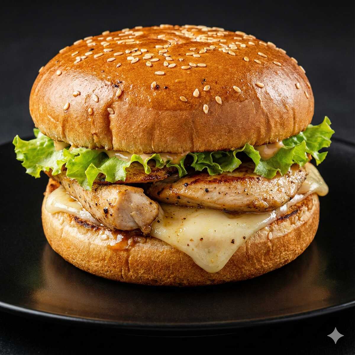 Pollo, pan, lechuga, tomate, cebolla al gusto (cruda o cocida), papa chips, jamón, tocineta, queso tajada y saslsas de la casa.
