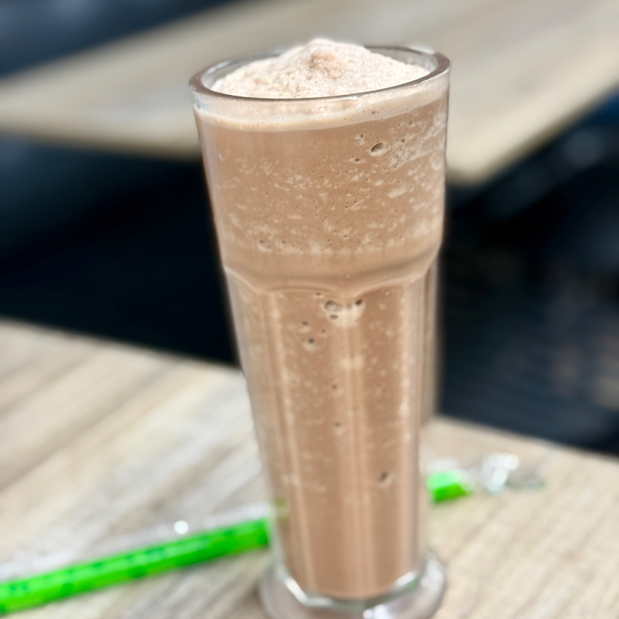 Helado de vainilla, café, Chocolatina cadbury, crema chantilly y chocolate.