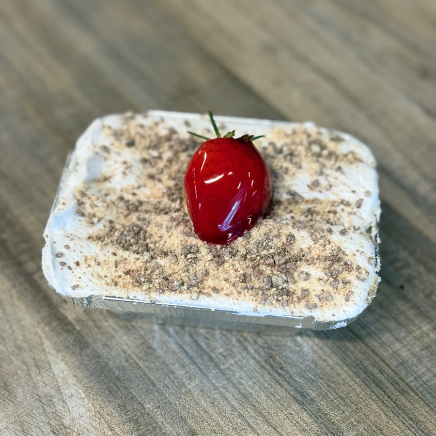 Postre tradicional a base de merengue con fresa, durazno y crema pastelera .