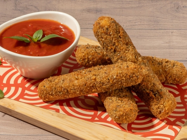 4 Deditos de Mozarella Apanados, Acompañados de Salsa Napolitana