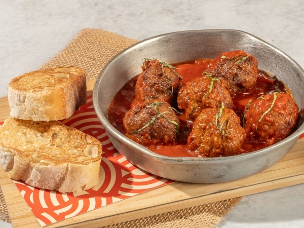 6 Albondigas de Vegetarianas (25gr C/u), Bañadas en Salsa Napolitana Acompañadas de Porcion de Pan